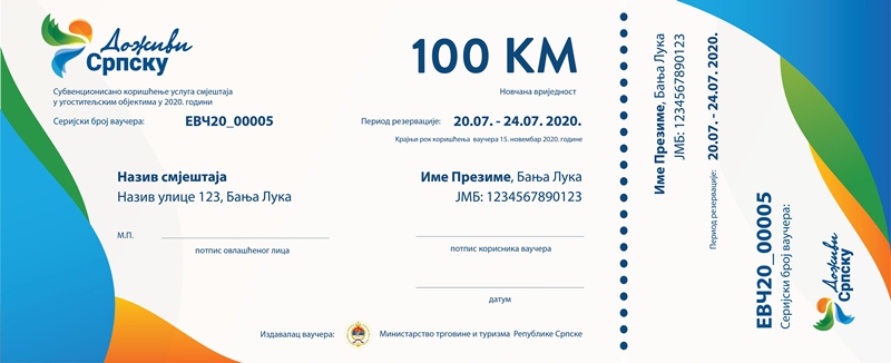 Министарство трговине и туризма расписало је Јавни позив за подношење пријаве за додјелу туристичког ваучера који је намијењен грађанима Републике Српске. Јавни позив је објављен у дневном листу „Глас Српске" и на интернет страници Министарства, у секцији Туристички ваучери.