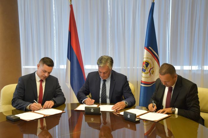 Споразум о електронској размјени података који предвиђа повезивање нотарских канцелерија у Републици Српској са јавним евиденцијама Министарства унутрашњих послова потписали су данас, у Бањој Луци, министри правде и унутрашњих послова Републике Српске Милош Букејловић и Синиша Каран са предсједником Нотарске коморе Републике Српске Бориславом Радићем.