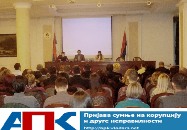 Апликација за пријаву сумње на корупцију и других неправилности (АПК), којом грађани, путем интернета, могу пријавити сумњу на корупцију на сајту Владе Републике Српске и свих њених министарстава, представљена је данас, у Бањој Луци, за правосудне институције у Републици Српској.
